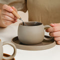 Savour Serenity: Japanese-Style Retro Stoneware Coffee Mug & Saucer Set