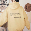 Wearing this hoodie means carrying a message of encouragement and warmth with you. The text on the back reminds everyone around you that they matter, adding a little kindness to the day of whoever reads it. It's more than a piece of clothing—it's a way to share positivity in the world.