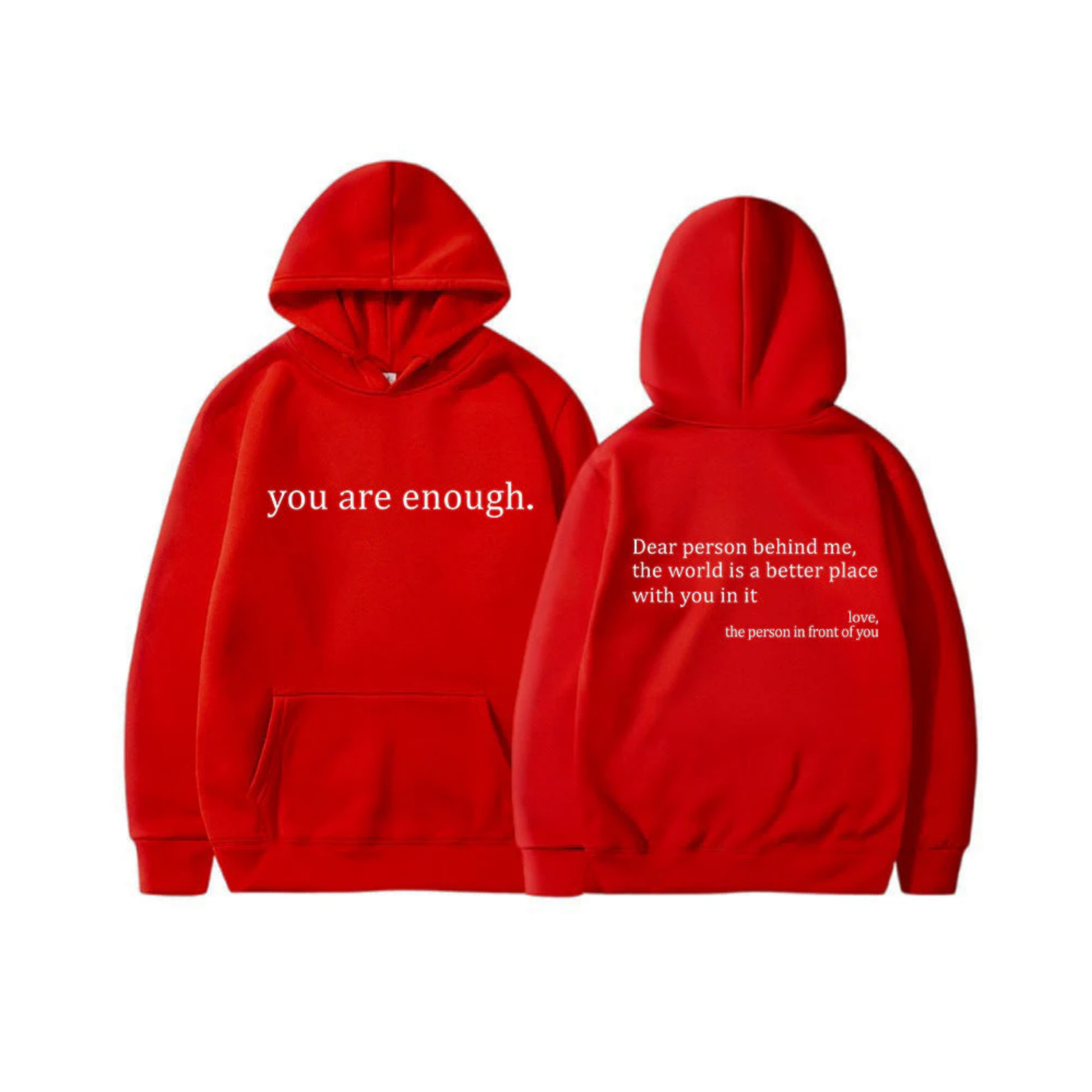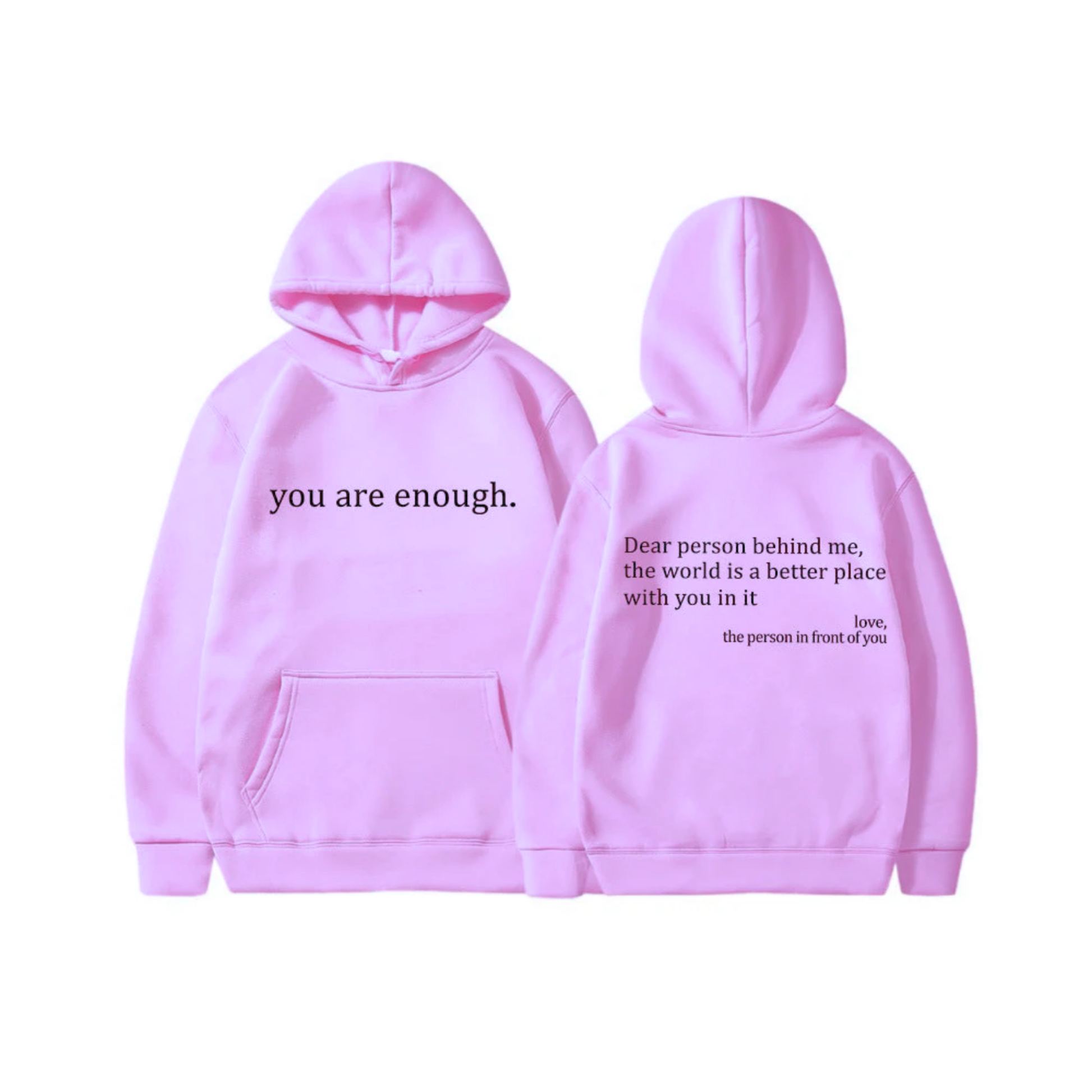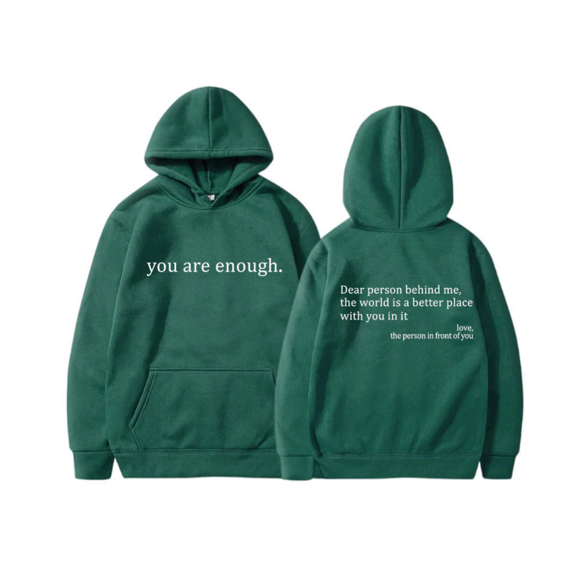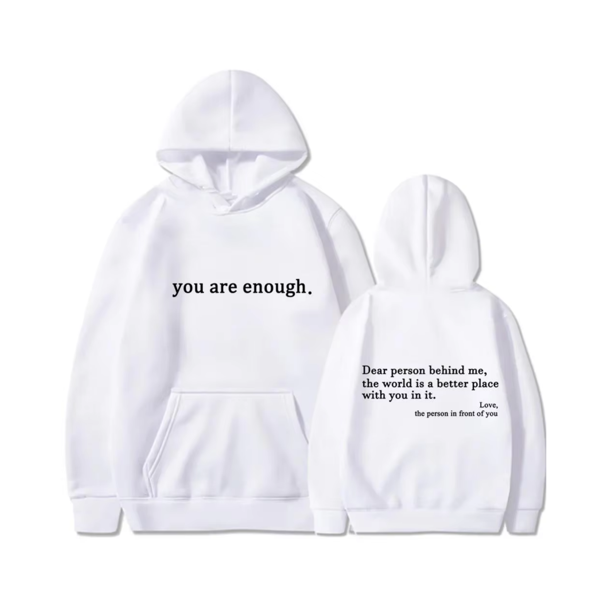 The uplifting messages on both the back and front of the hoodie is designed to spread kindness and positivity wherever you go, making both you and those around you feel good.