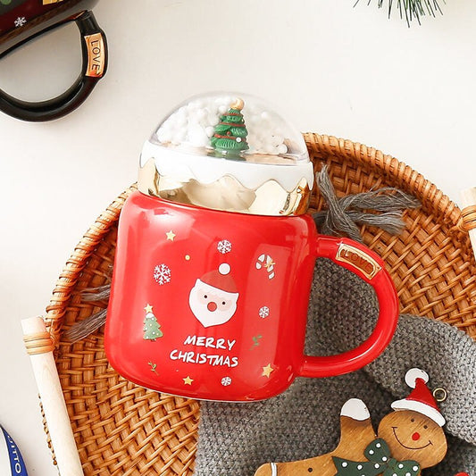 Christmas Ceramic Cup with Lid - Festive Coffee and Milk Mug
