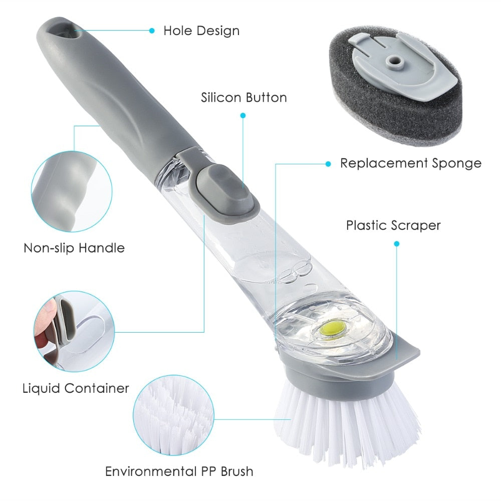 Introducing our innovative Kitchen Cleaning Brush with a built-in liquid soap dispenser! This handy cleaning tool is designed to simplify your dishwashing and keep your hands clean. Here's why you need it: