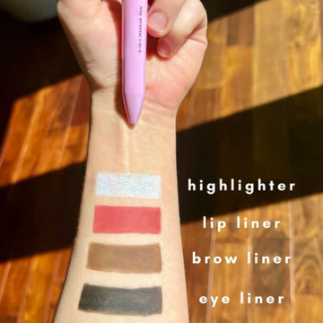 Includes an eyeliner, brow liner, lip liner, and highlighter. All in a simple & compact tool, great for when you're going out and want to look your best!