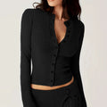 CozyButton Ribbed Knit Top & Bottom – Sleek Comfort with a Stylish Edge