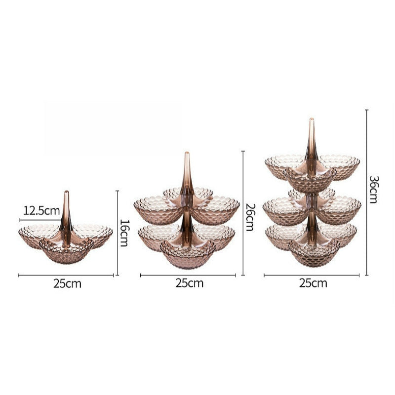 1. Elegant Multi-Layer Design: This three-layer fruit tray offers ample space for snacks, fruits, and candies, making it ideal for any social event.