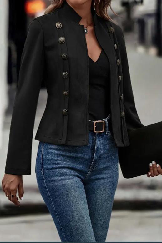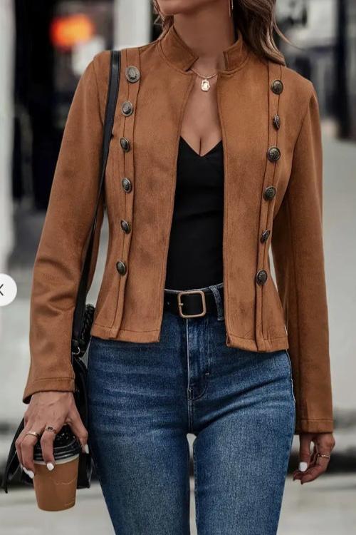 🧥 Military-Inspired Elegance: This jacket features a chic, double-breasted button design that adds a touch of sophistication to any outfit.