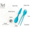5-in-1 Versatility: This innovative tool serves as a spoon, fork, knife, bottle opener, and can opener, eliminating the need for multiple utensils.